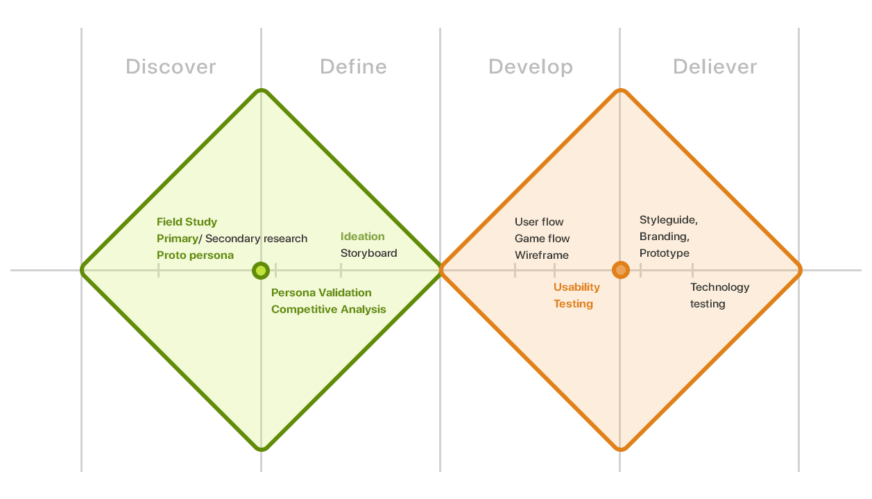 This was a team project involving seven members: two UX researchers, two UI designers, two animators, and one game designer. As a UX researcher, I primarily focused on primary research and usability testing. In addition, I acted as a facilitator within the group, contributing to discussions throughout the design process and collaborating closely with other roles to shape the overall solution.