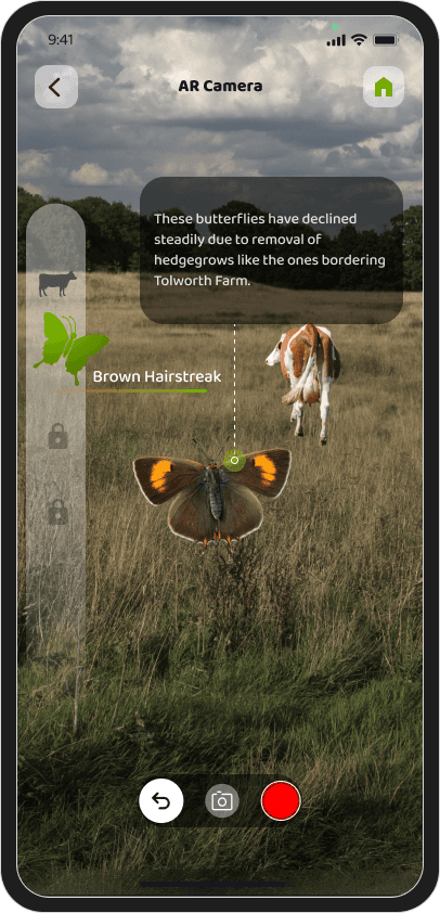 This project aimed to design an interactive AR application that enables local communities to engage with the rewilding initiative at Tolworth Court Farm Fields.